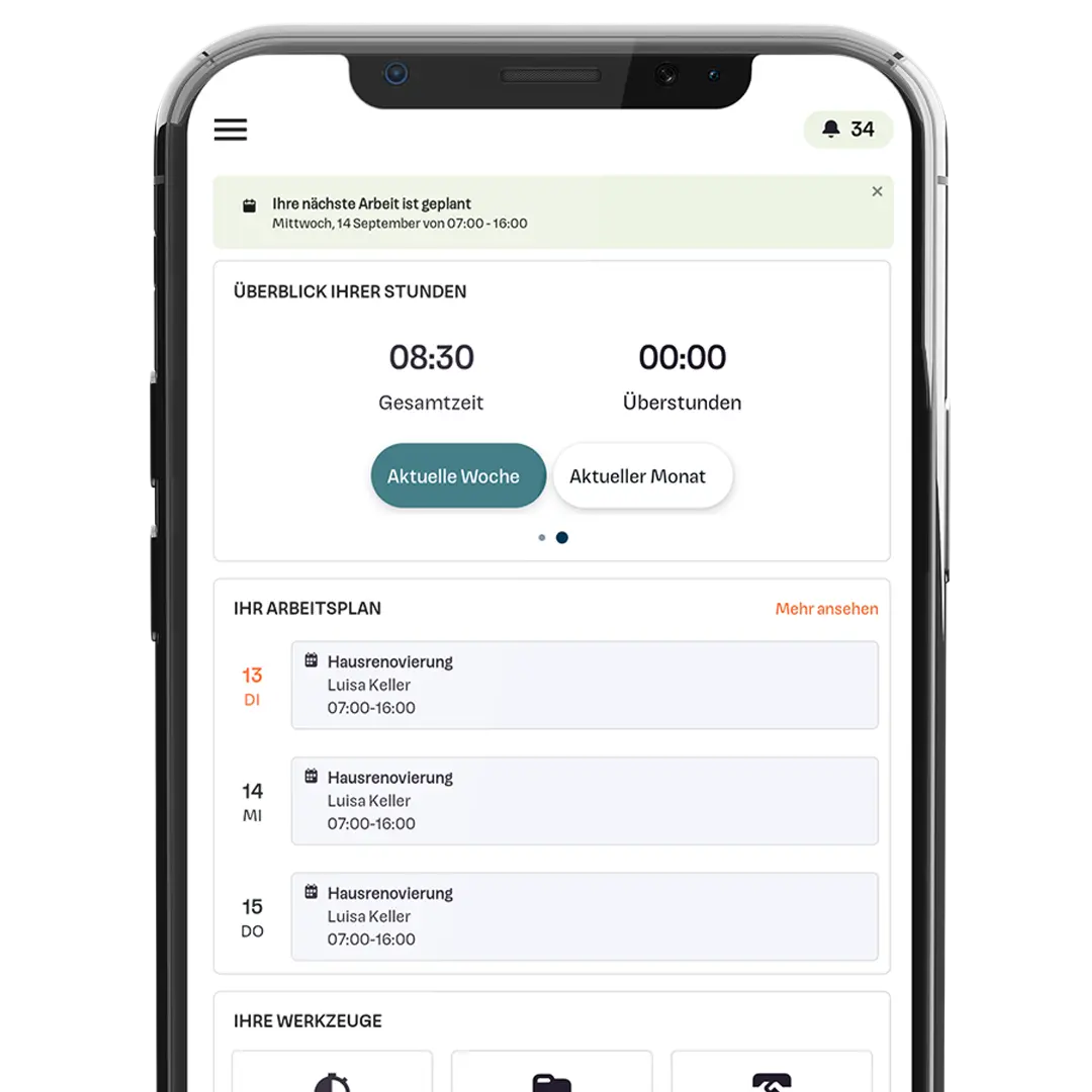 Die Arbeitsstunden werden spielend in der App erfasst und du siehst sie sofort am PCAdministratoren können jederzeit sehen, welche Zeiten auf welchem Projekt erfasst wurden und ob die kalkulierten Stunden mit den tatsächlichen Stunden übereinstimmen. So behält man einen schnelleren und besseren Überblick.