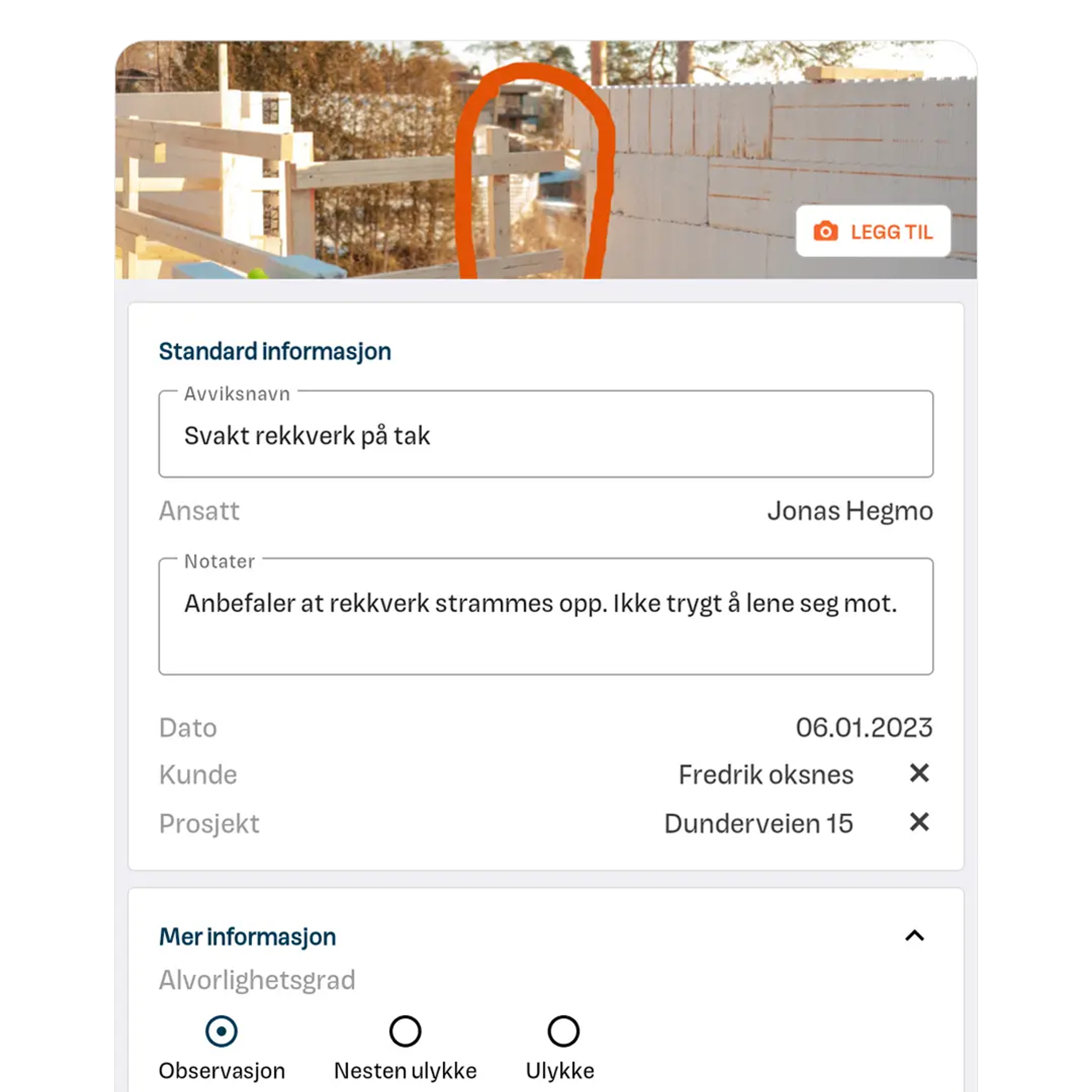• Fyll ut SJA og dokumenter HMS-arbeidet direkte i appen